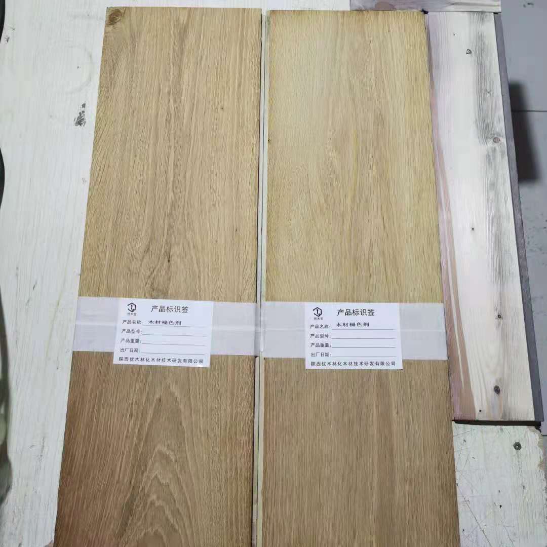 优木宝褪色剂是一款新型环保木材褪色剂,主要用于红橡,欧橡,柞木,水曲柳,黑胡桃,山核桃,枫木,桦木等多种材质的木地板,木制家具,木制工艺品等更多木制品表板面的红色素,深色板,氧化板褪色去除色差·本产品为单组份,操作简单,通过对板材表面简单涂刷,喷涂,滚涂,对木材表面的深色素还原化学反应使其原深颜色还原至木材本色,经处理后的板材就可达到色泽一致,板面自然干净,纹理通透清晰,层次感强,不返黄,渗透深等优点。