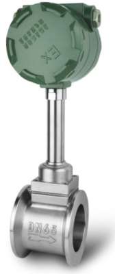 1.夹装式涡街流量计、本体材质为不锈钢、本安防爆、二线制4-20mA输出、公称压力1.6MPa,计量介质为一般气体,精度1.5级。