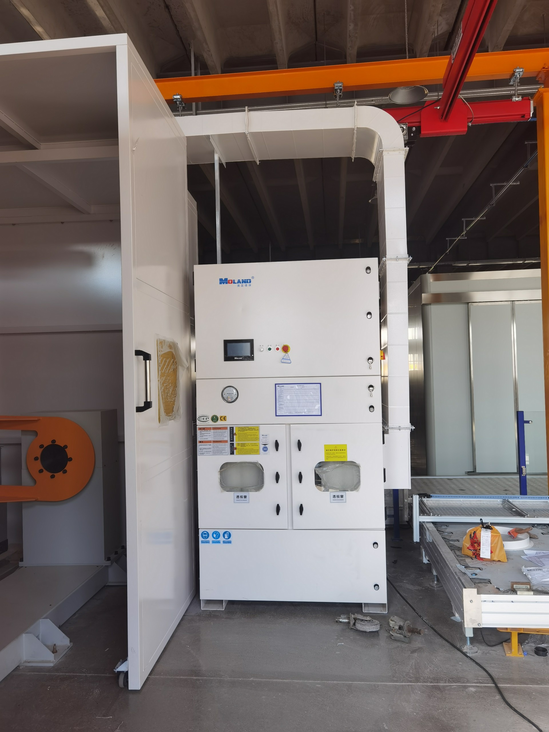 房体式除尘适用于自动化设备生产过程产生的烟尘烟雾净化如焊接机器人、焊接专机、金属及塑料件的打磨、研磨和抛光、钻孔、热加工、切割粉碎、石材加工、粉末包装、混合加工等产生的固体颗粒物以及各类粉尘及烟尘。