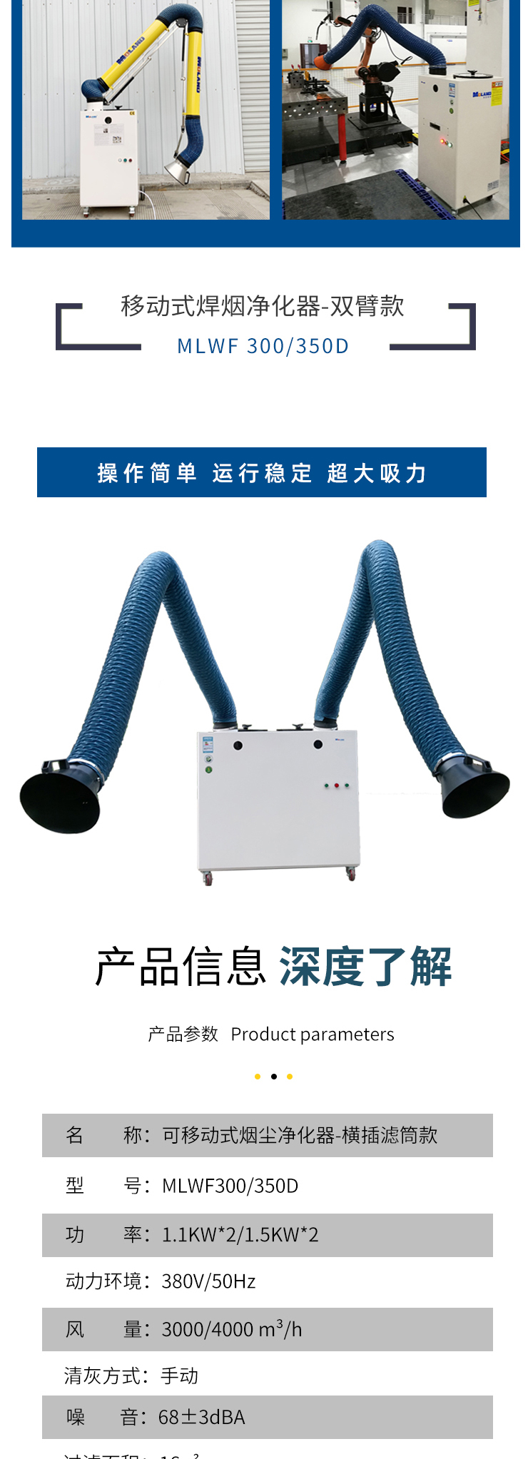 本网页所展示的有关【可移动式 焊烟净化器 横插滤筒款 双吸气臂 烟尘净化器】的信息/图片/参数等由的会员【 山东美蓝环保科技有限公司 】提供,由聚采网会员【 山东美蓝环保科技有限公司 】自行对信息/图片/参数等的真实性、准确性和合法性负责,本平台(本网站)仅提供展示服务,请谨慎交易,因交易而产生的法律关系及法律纠纷由您自行协商解决,本平台(本网站)对此不承担任何责任。您在本网页可以浏览【可移动式 焊烟净化器 横插滤筒款 双吸气臂 烟尘净化器】有关的信息/图片/价格等及提供 【可移动式 焊烟净化器 横插滤筒款 双吸气臂 烟尘净化器】的商家公司简介、联系方式等信息。