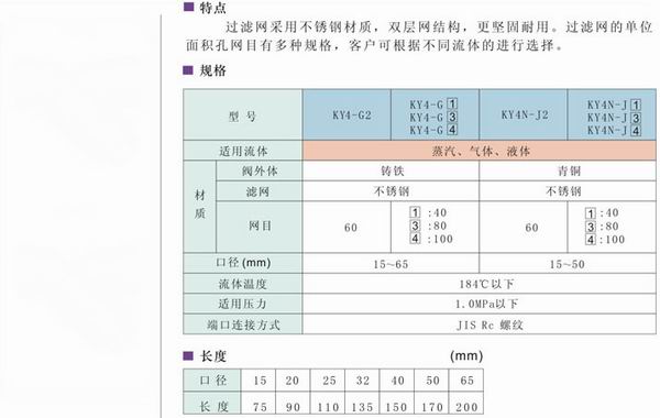 阀天VENN过滤器型号有:KT-1(创新T型) KU-1(U型) KY-4(螺纹) KY-6(法兰)