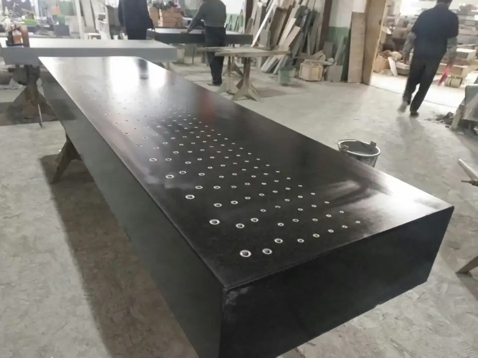 大理石平台是用的石质材料制成的精密基准测量工具,对仪器仪表、精密工具、机械制件的检验,都是理想的基准面。