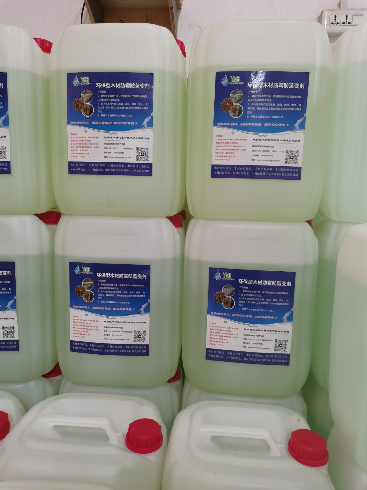 优木宝环保型木材防蓝变剂是陕西优木林化木材技术研发有限公司研发的一种新型环保木材防蓝变剂,能很好的防止木材因气候原因霉菌引起的发霉蓝变,新型防蓝变剂,对白曲霉,青霉,毛霉,木绿霉等,木霉是因气候潮湿真菌感染所造成的霉变蓝变,每年的4到10月份是木材霉变蓝变的高发期,木材一旦霉变就会造成不必要的损失,所以前期木材防霉防蓝变很重要,防蓝变剂可以制止霉菌的生长繁殖,使霉菌降低,从而达到防霉防蓝变效果.