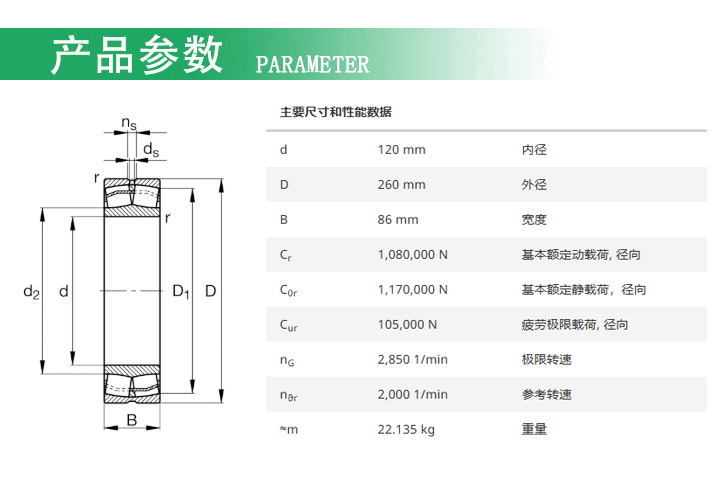 2、可承载双向轴向力和高径向力,为适应重载荷场合要求而设计的;