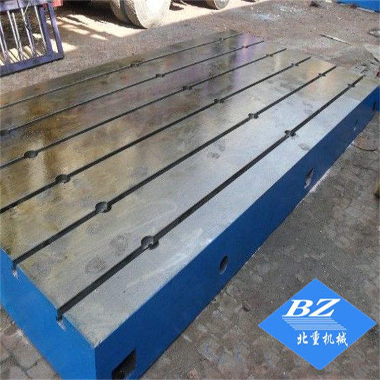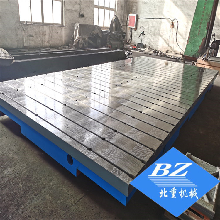铸铁平板平台总体结构基本上是箱体式和筋板式,工作面有长方形、正方形或圆形,按精度加工划分有:精刨、刮研工艺两种,平板平台工作面上可加工V形、T形、 U形槽、燕尾槽、圆孔、长孔等,是用于工件、设备检测、划线、装配、焊接、组装、铆焊的平面基准量具。