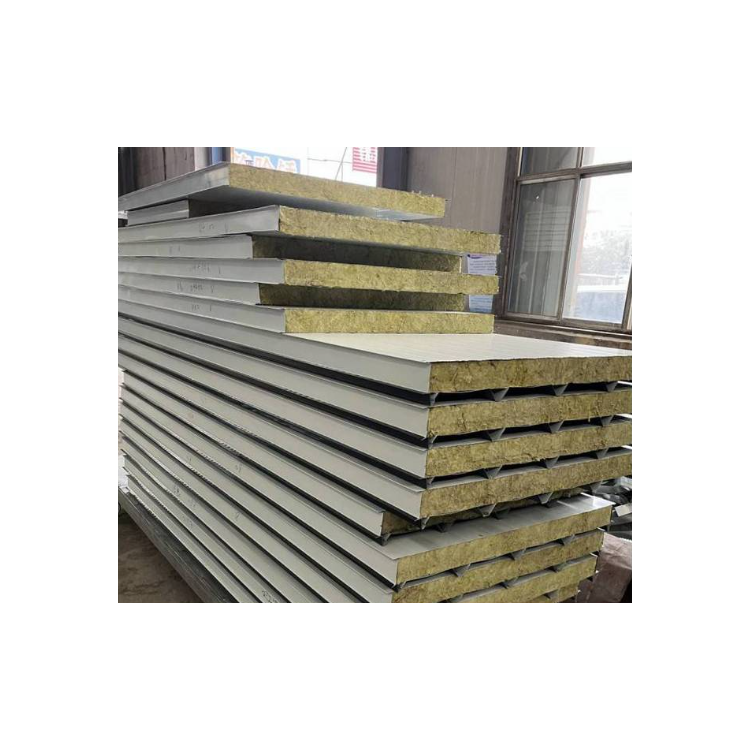 彩钢岩棉夹芯板厚度与普通岩棉复合板类似,但宽度多固定为950mm,长度可裁剪。